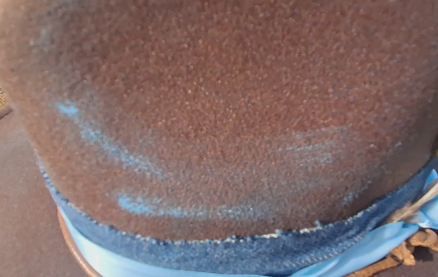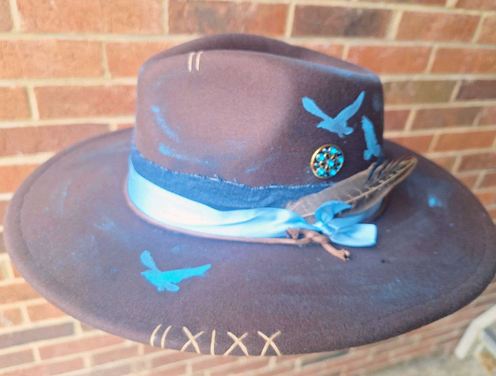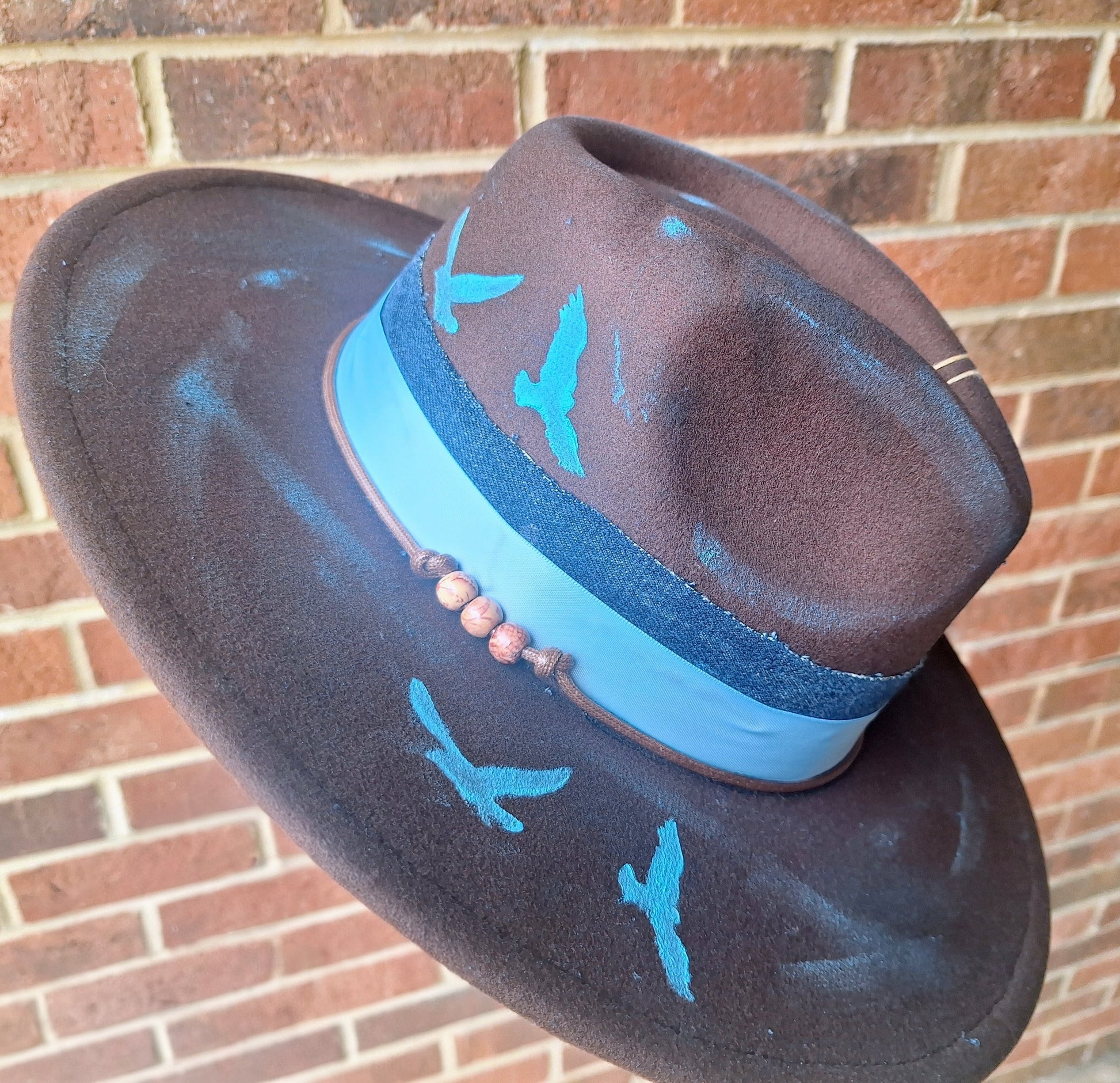 Introducing the "Blue Winter" Hat: a unique and hand-painted conversation piece. Made with a mix of warm brown and cool blues, this one-of-one hat adds a pop of shine to any winter outfit. Stay warm and stand out with this truly special accessory.