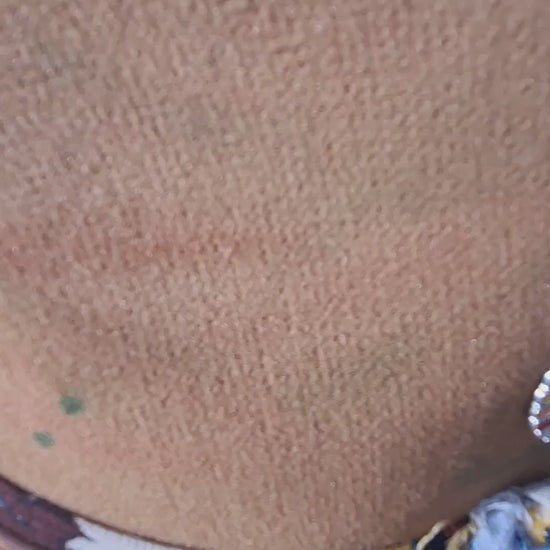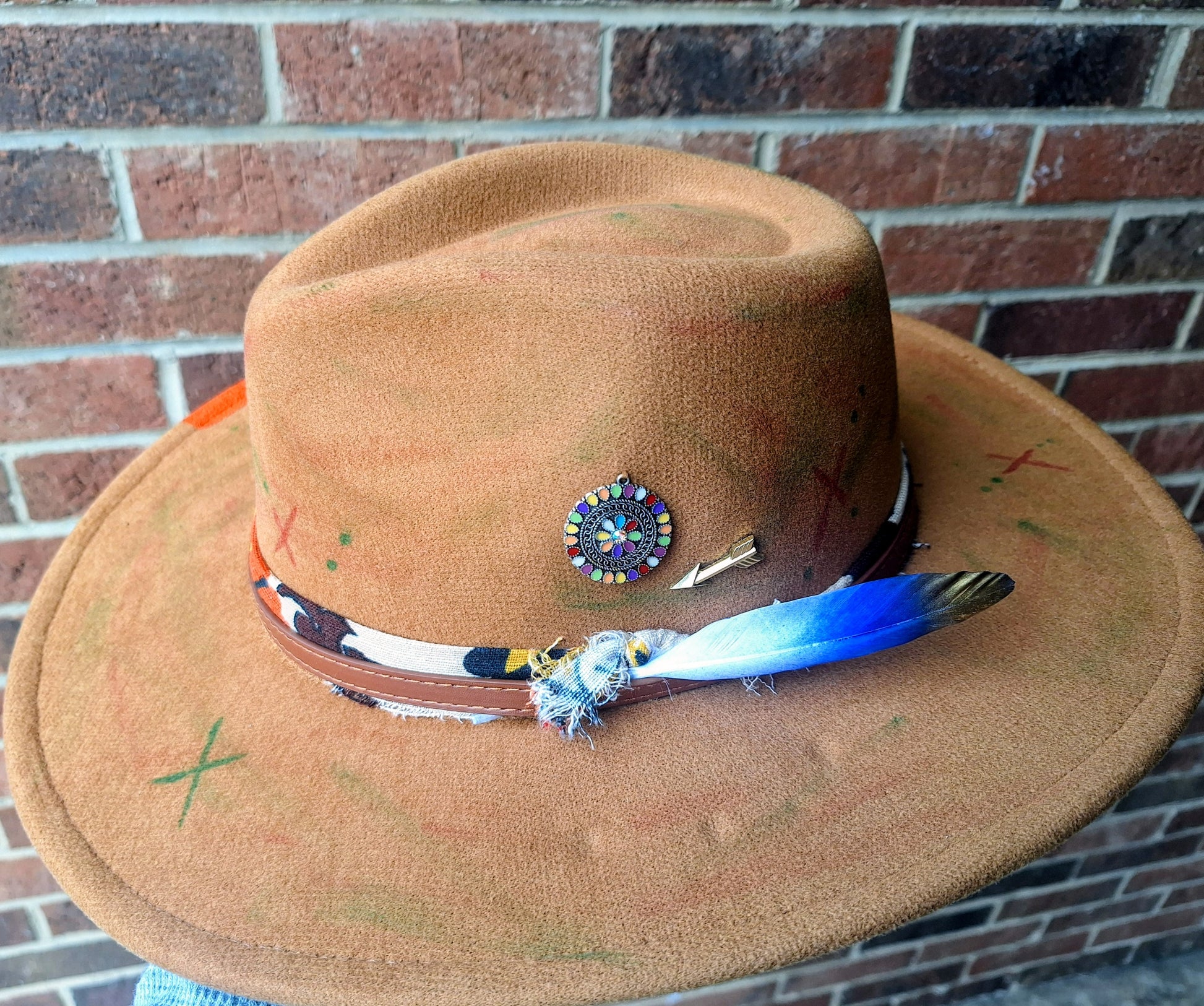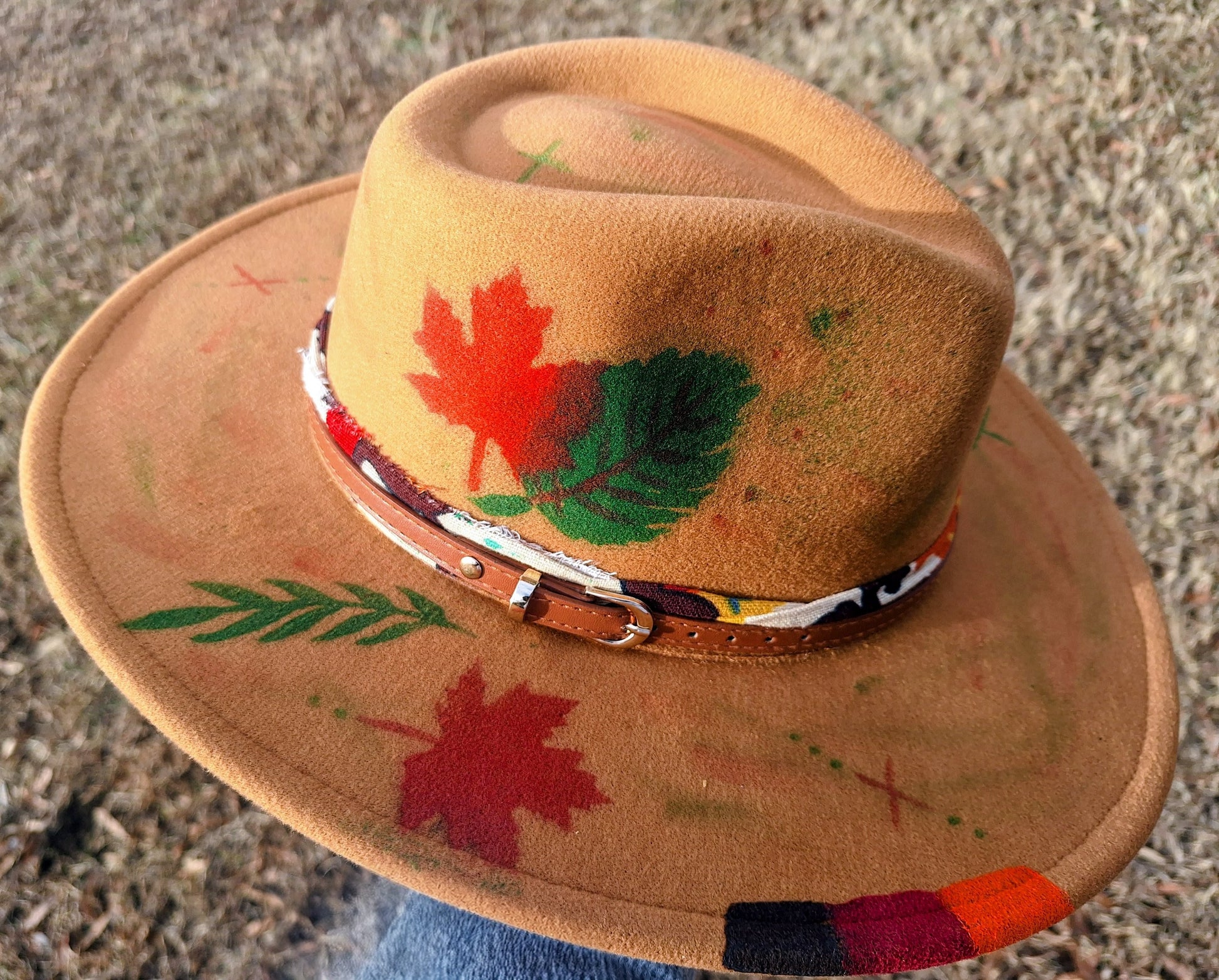 Add a pop of color to your fall wardrobe with our hand painted "Fall Time" hat. Featuring vibrant shades of red and green, this warm and fun accessory is sure to be a conversation starter. Plus, its mild shiny accent adds a touch of unique style. Perfect for any fashion-forward individual looking to stand out this season.